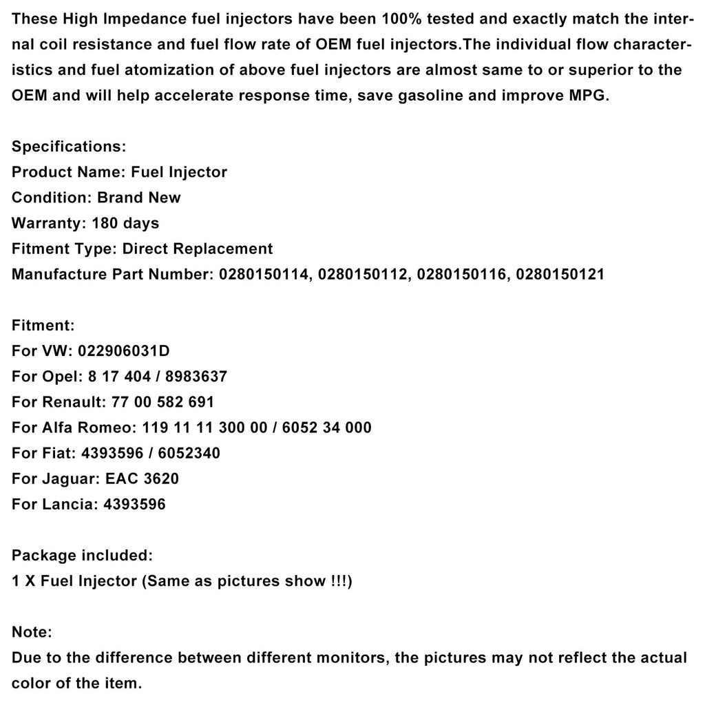 1PCS Fuel Injector 0280150114 Fit VW Fit Opel Fit Renault Fit Alfa Romeo