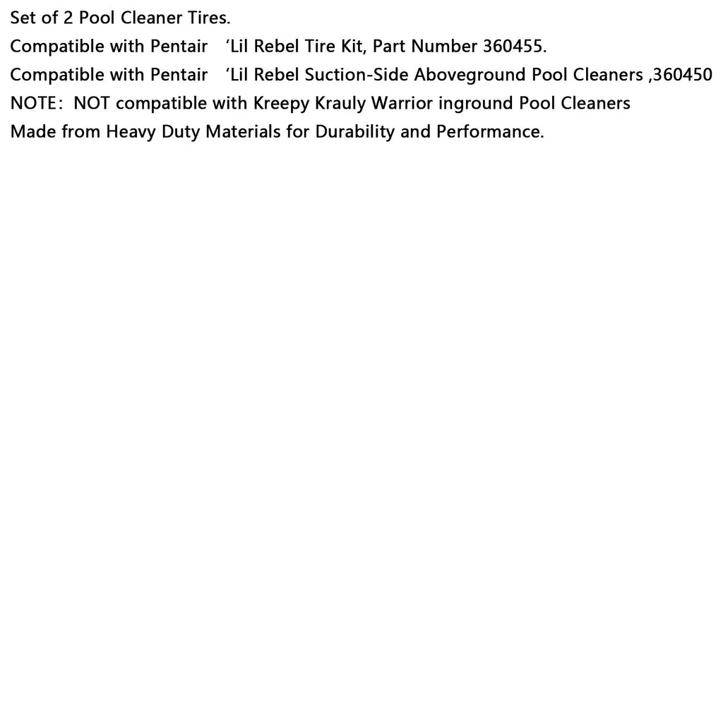 Compatible with Pentair ‘Lil Rebel Tire Kit (Part #360455) and Pentair ‘Lil Rebel Suction-Side Aboveground Pool Cleaners (Model #360450).