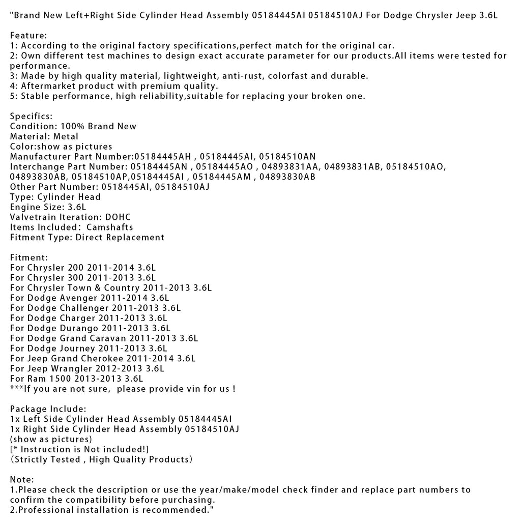 Brand New Left+Right Side Cylinder Head Assembly 05184445AI 05184510AJ Fit For Dodge Chrysler Jeep 3.6L
