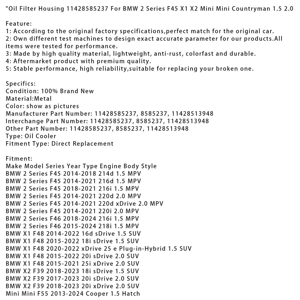Oil Filter Housing 11428585237 For BMW 2 Series F45 X1 X2 Mini Mini Countryman 1.5 2.0