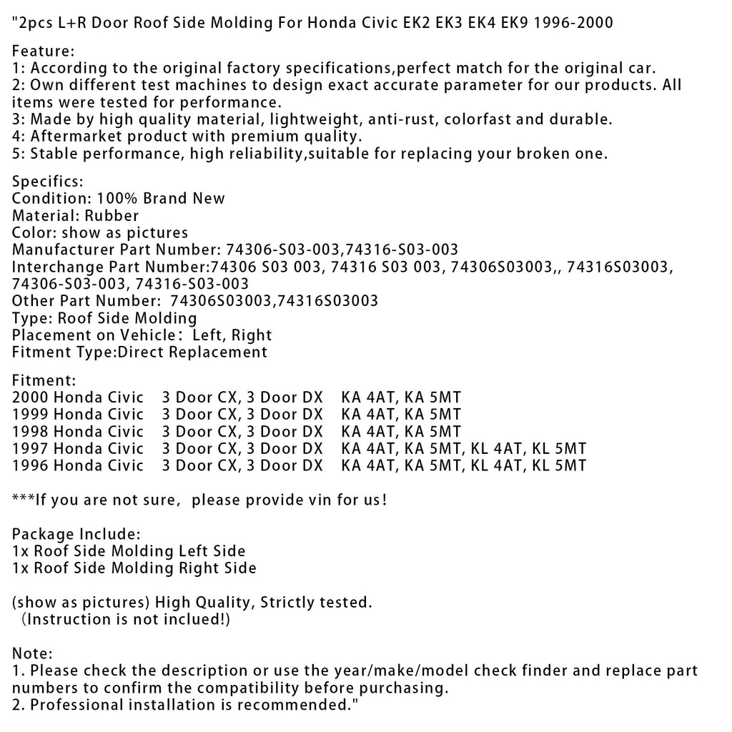 2pcs L+R Door Roof Side Molding Fit For Honda Civic EK2 EK3 EK4 EK9 1996-2000