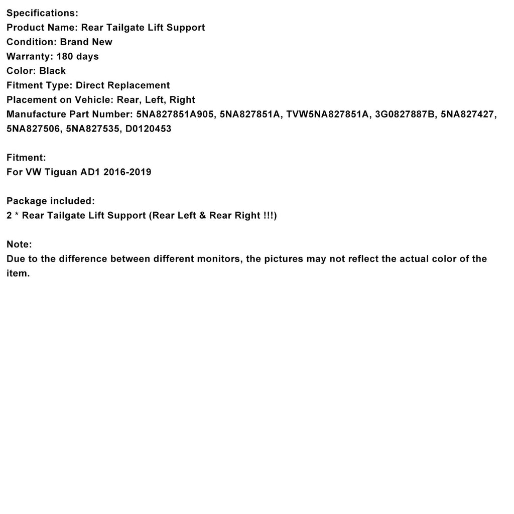 2PCS Rear Electric Tailgate Gas Strut NA827851A Fit for VW TIGUAN AD1 2016-2019
