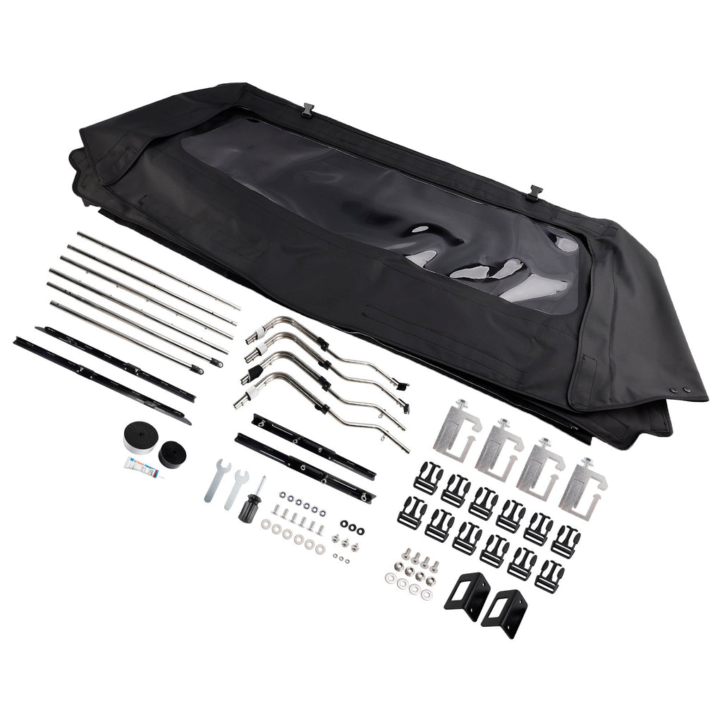 When not in use, the top is stored in the convenient built-in storage system along with the side panels.