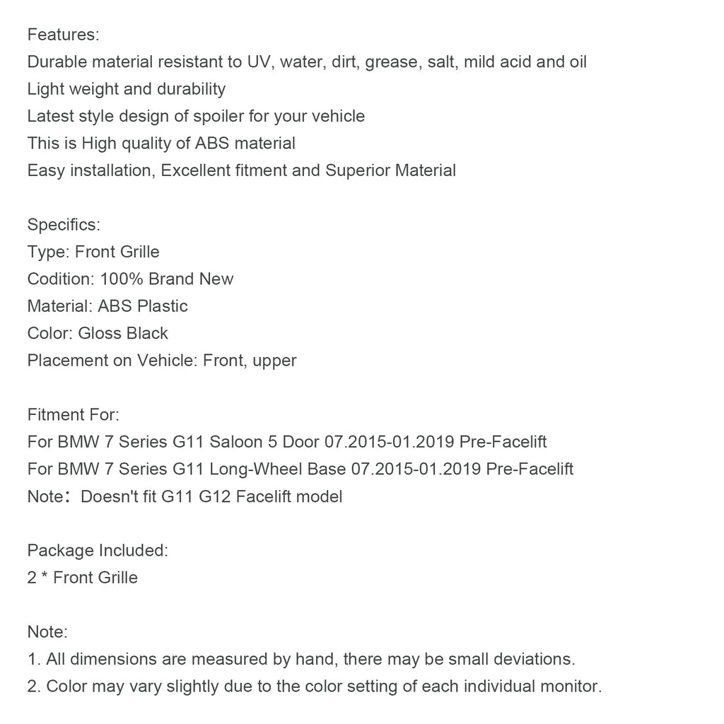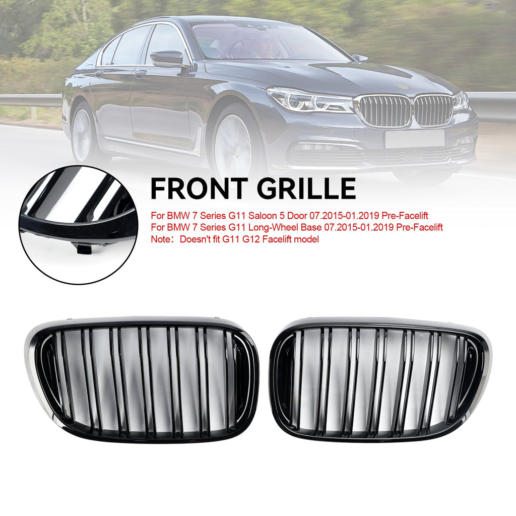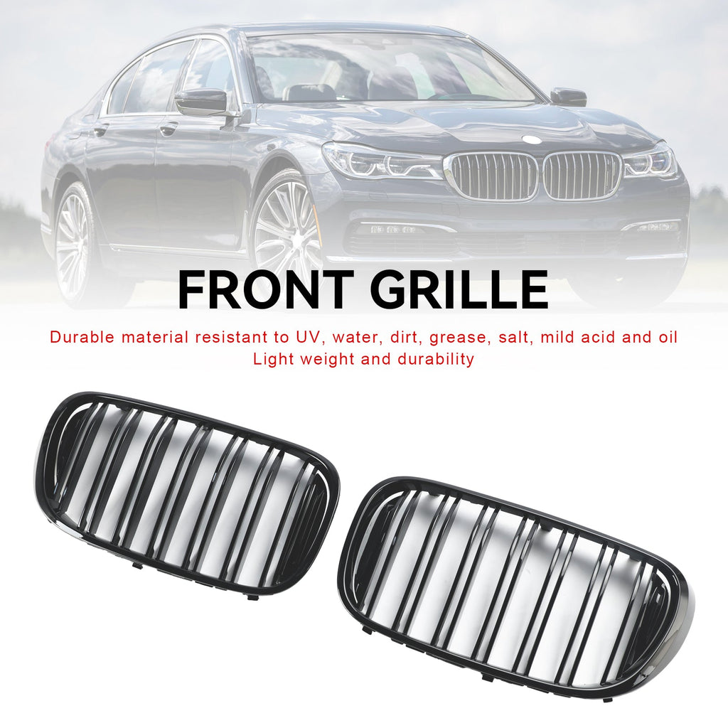 Black 2 Slat Front Kidney Grill Grille Fit for BMW 7 Series G11 G12 2016-18 Pre-LCI
