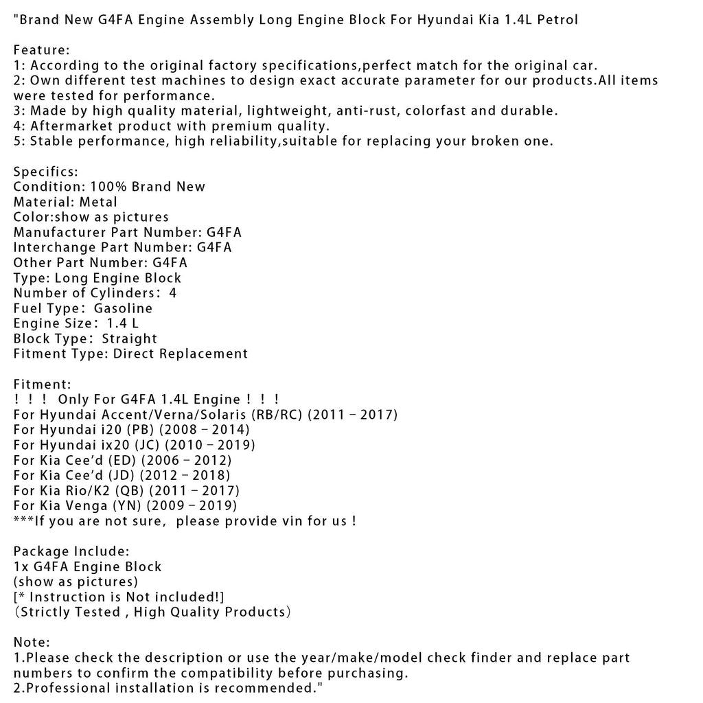 !!!Only For G4FA 1.4L Engine !!!