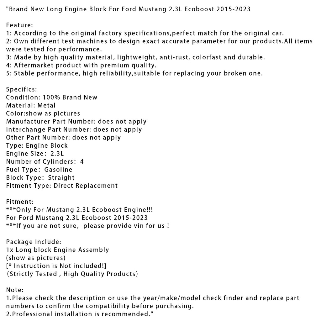 Brand New Long Engine Block For Ford Mustang 2.3L Ecoboost 2015-2023