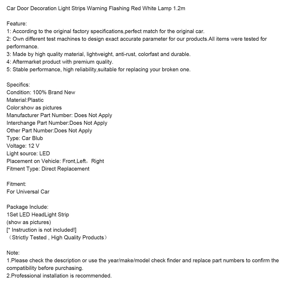 Car Door Decoration Light Strips Warning Flashing Red White Lamp 1.2m