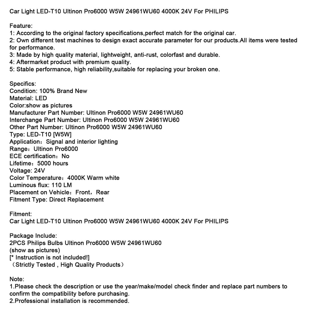 Car Light LED-T10 Ultinon Pro6000 W5W 24961WU60 4000K 24V For PHILIPS