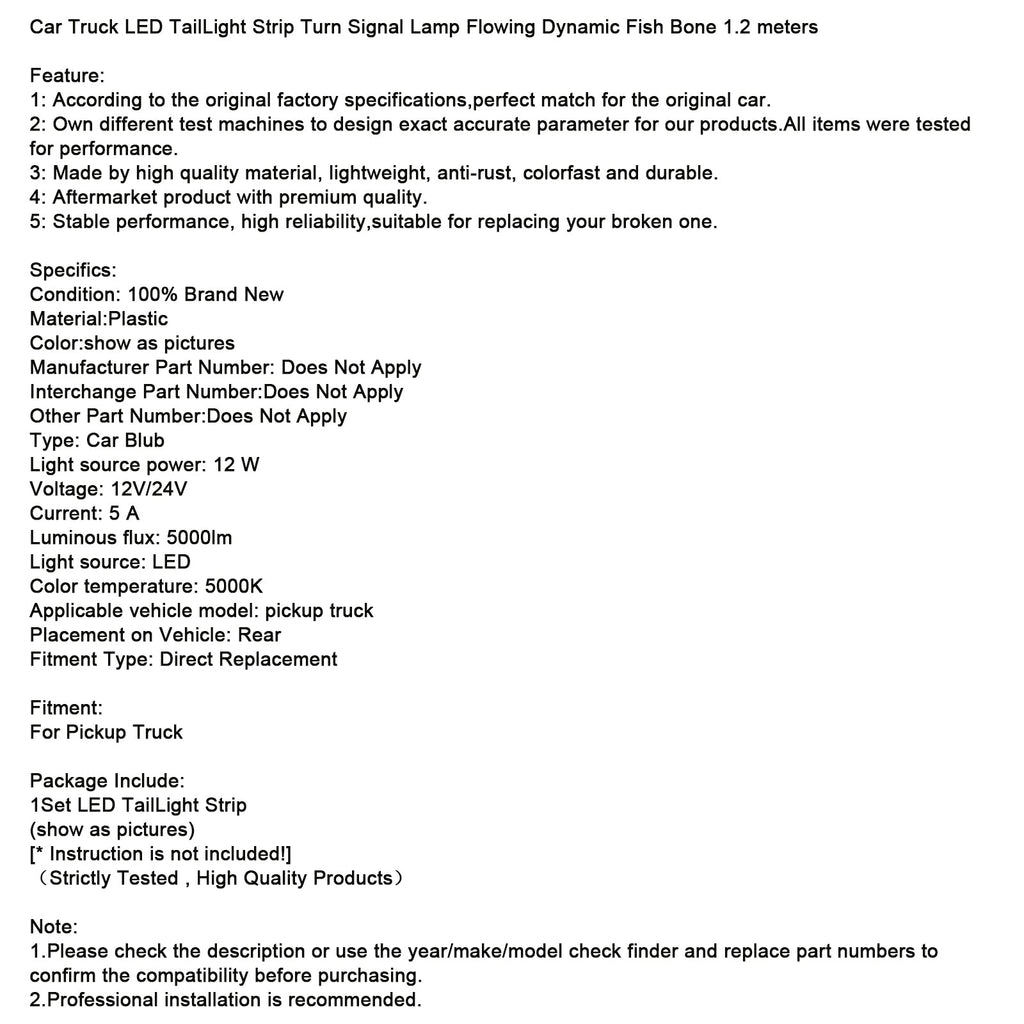 Car Truck LED TailLight Strip Turn Signal Lamp Flowing Dynamic Fish Bone 1.2 meters
