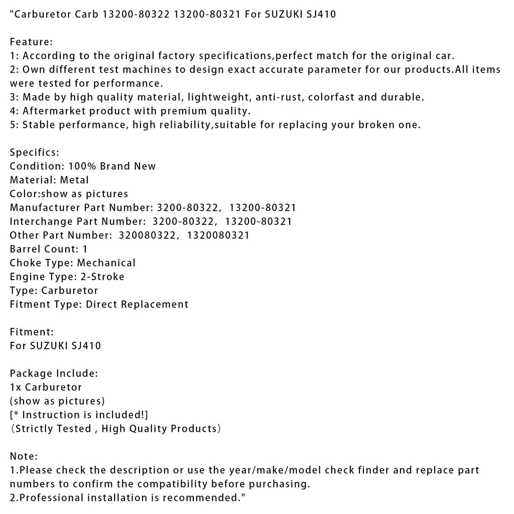 SUZUKI SJ410 Carburetor Carb 13200-80322 13200-80321