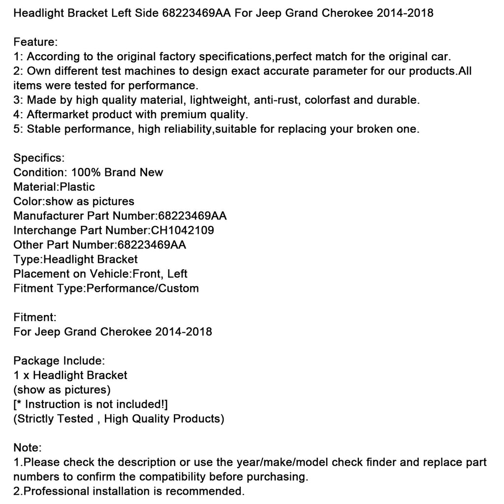 Headlight Bracket Left Side 68223469AA Fit For Jeep Grand Cherokee 2014-2018