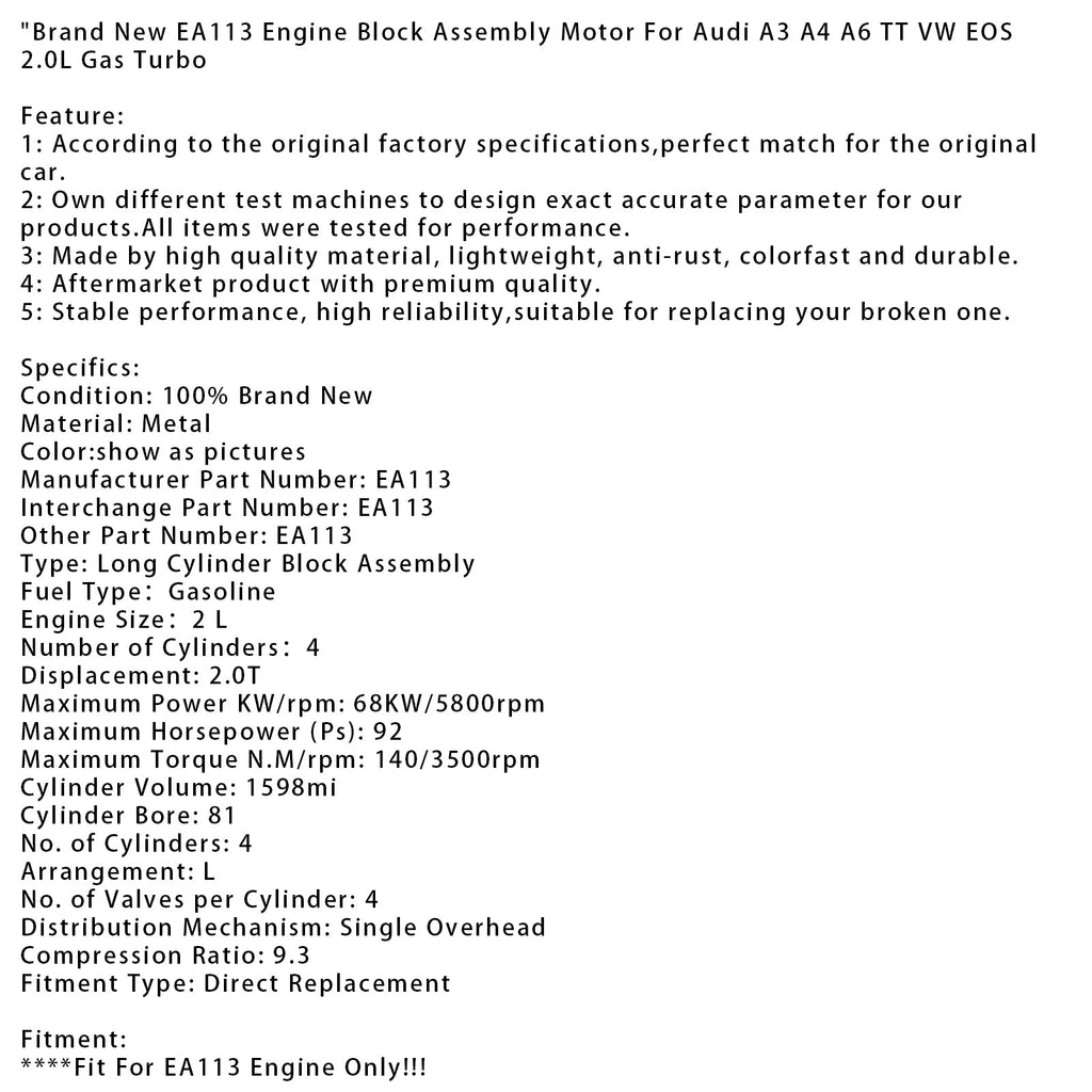 Brand New EA113 Engine Block Assembly Motor For Audi A3 A4 A6 TT VW EOS 2.0L Gas Turbo