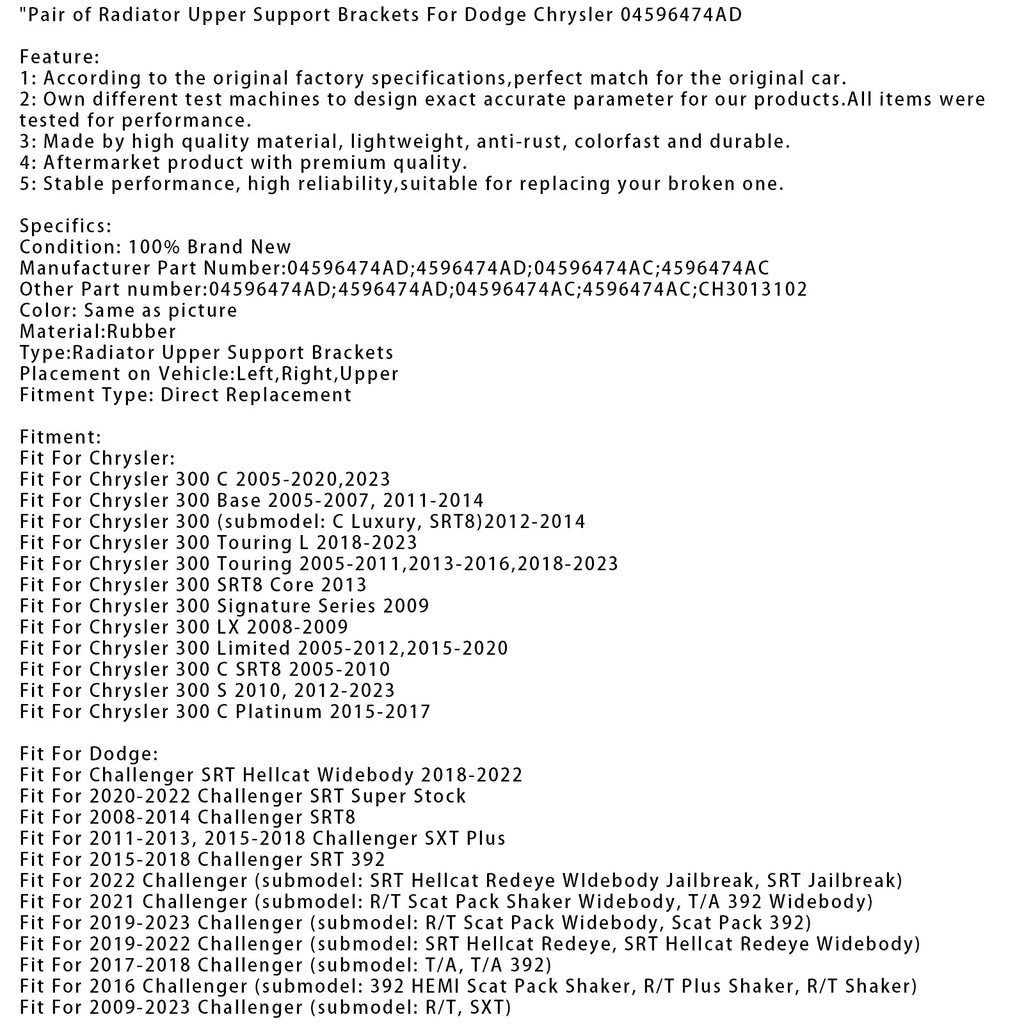 Pair of Radiator Upper Support Brackets For Dodge Chrysler 04596474AD