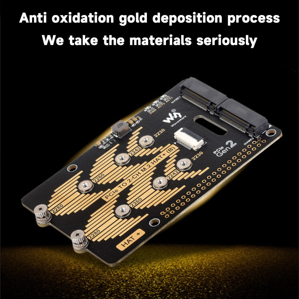 Raspberry Pi 5th-Generation PCIe Dual Channel M.2 Rotary Board Nvme Protocol Dual M.2 Hard Disk Read and Write Faster Read and Write Speed