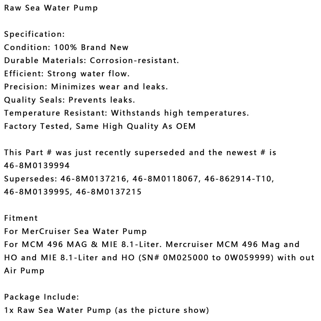 Raw Sea Water Pump For MerCruiser Mercury 46-8M0139994 8M0137215