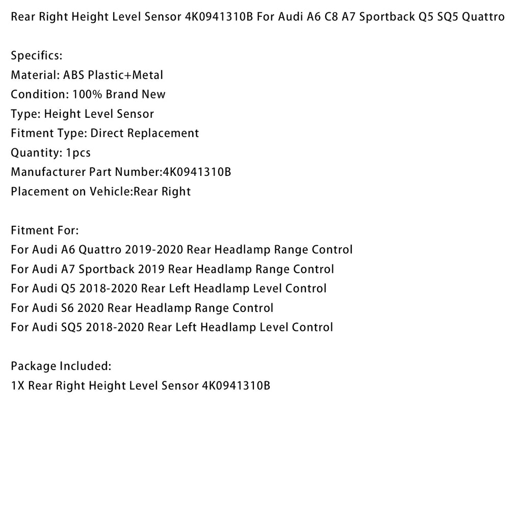 Rear Right Height Level Sensor 4K0941310B For Audi A6 C8 A7 Sportback Q5 SQ5 Quattro