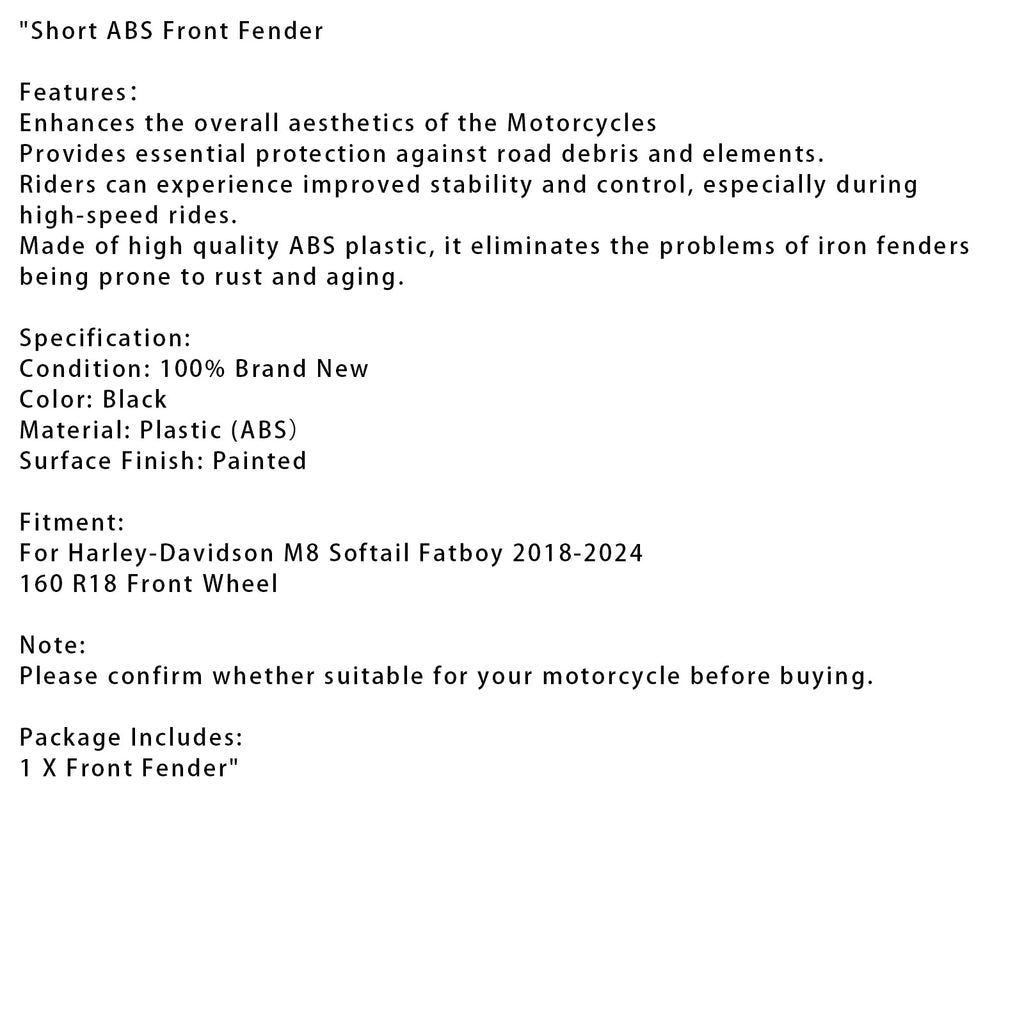 Short ABS Front Fender For M8 Softail Fat Boy FLFB 160 R18 2018-2024