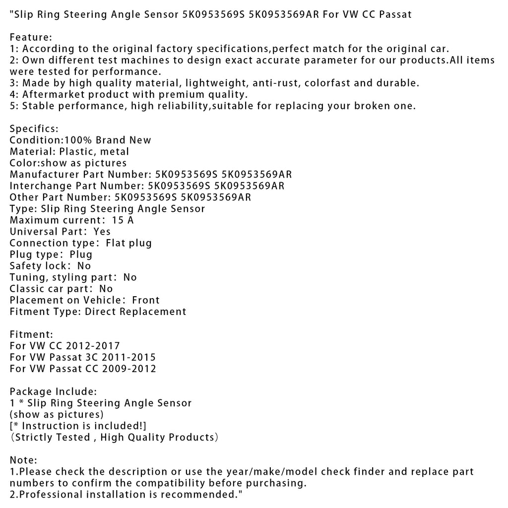 Slip Ring Steering Angle Sensor 5K0953569S 5K0953569AR For VW CC Passat