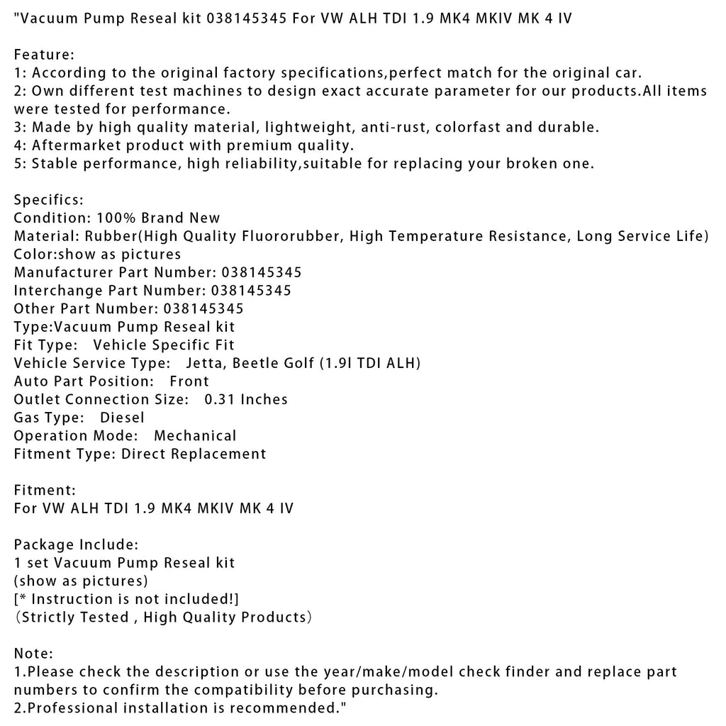 Vacuum Pump Reseal kit 038145345 For VW ALH TDI 1.9 MK4 MKIV MK 4 IV