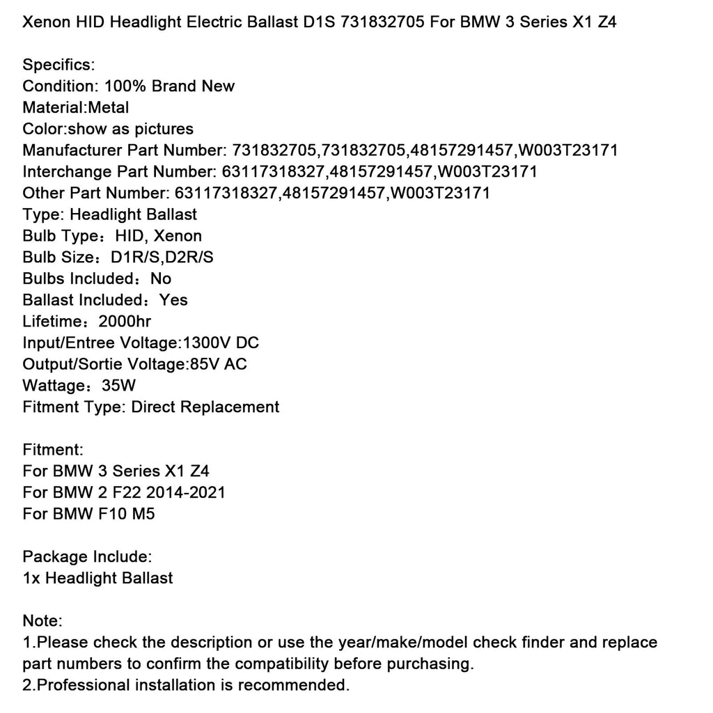 Xenon HID Headlight Electric Ballast D1S 731832705 For BMW 3 Series X1 Z4