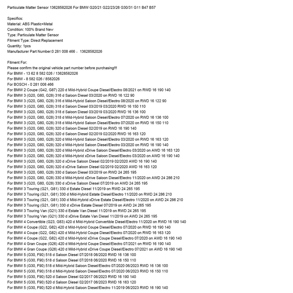 Particulate Matter Sensor 13628582026 For BMW G20/21 G22/23/26 G30/31 G11 B47 B57