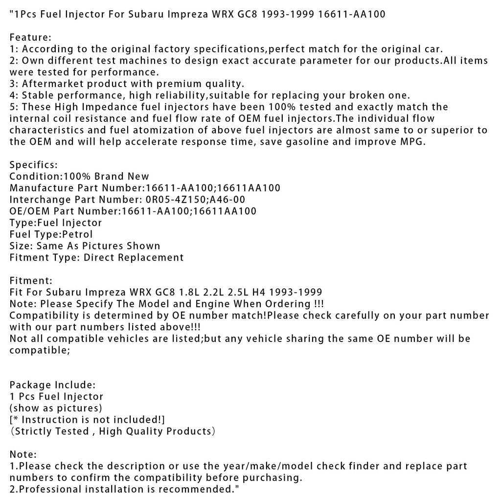 1Pcs Fuel Injector Fit For Subaru Impreza WRX GC8 1993-1999 16611-AA100
