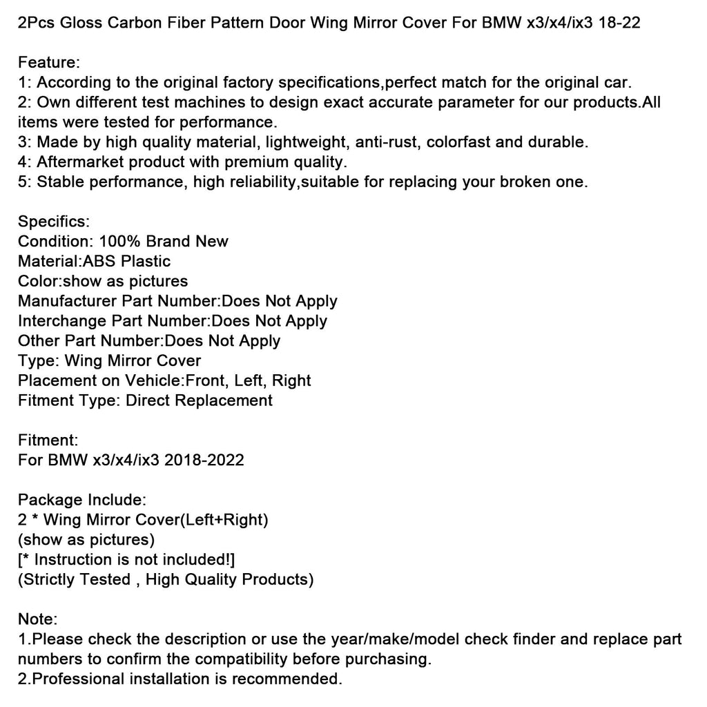 2Pcs Gloss Carbon Fiber Pattern Door Wing Mirror Cover Fit For BMW x3/x4/ix3 2018-2022