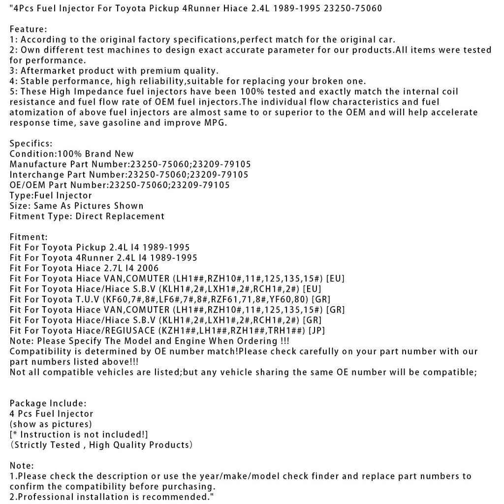 4Pcs Fuel Injector For Toyota Pickup 4Runner Hiace 2.4L 1989-1995 23250-75060