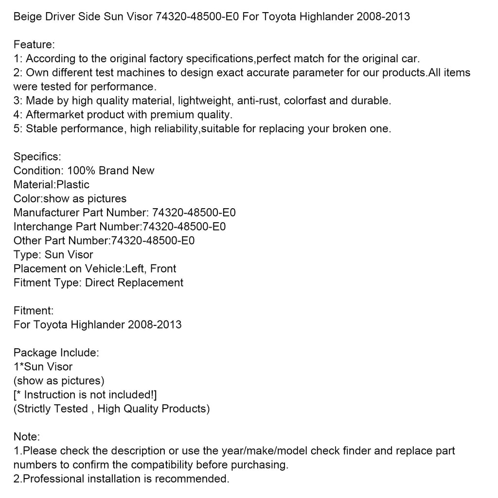 Beige Left Side Sun Visor Fit For Toyota Highlander 2008-2013 74320-48500-E0