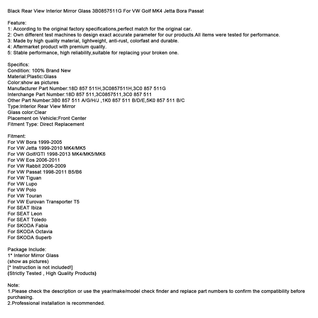 Black Rear View Interior Mirror Glass 3B0857511G For VW Golf MK4 Jetta Bora Passat