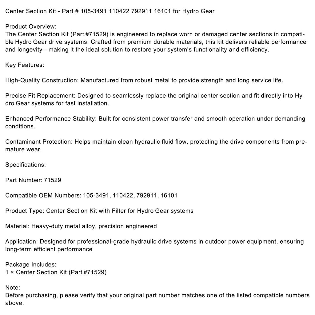 Compatibility: Designed to fit Hydro Gear systems, replacing old or damaged center section kits.