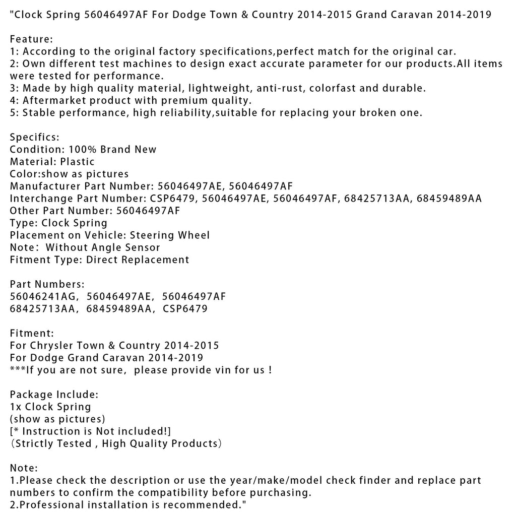 Clock Spring 56046497AF For Dodge Town & Country 2014-2015 Grand Caravan 2014-2019