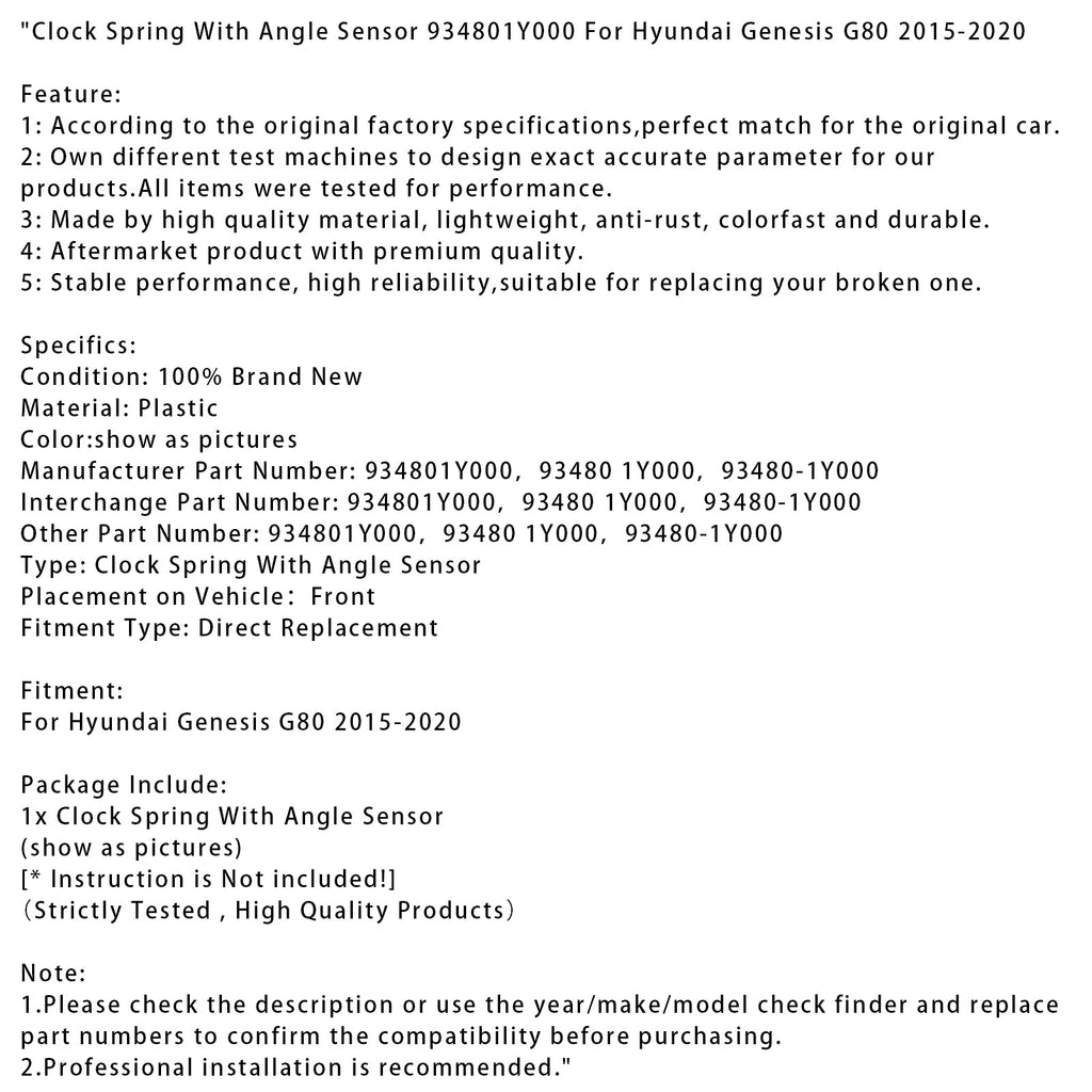 Clock Spring With Angle Sensor 934801Y000 Fit For Hyundai Genesis G80 2015-2020