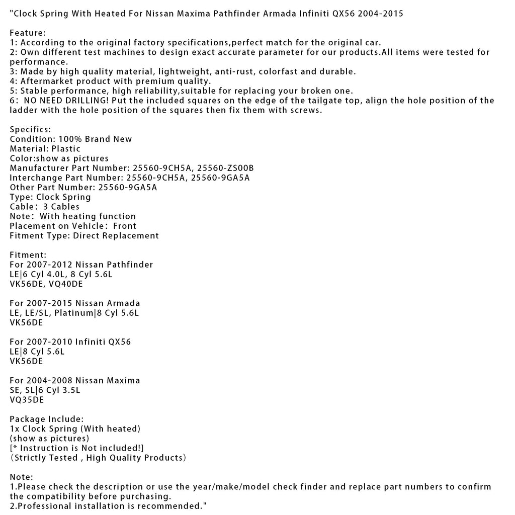 Clock Spring With Heated For Nissan Maxima Pathfinder Armada Infiniti QX56 2004-2015