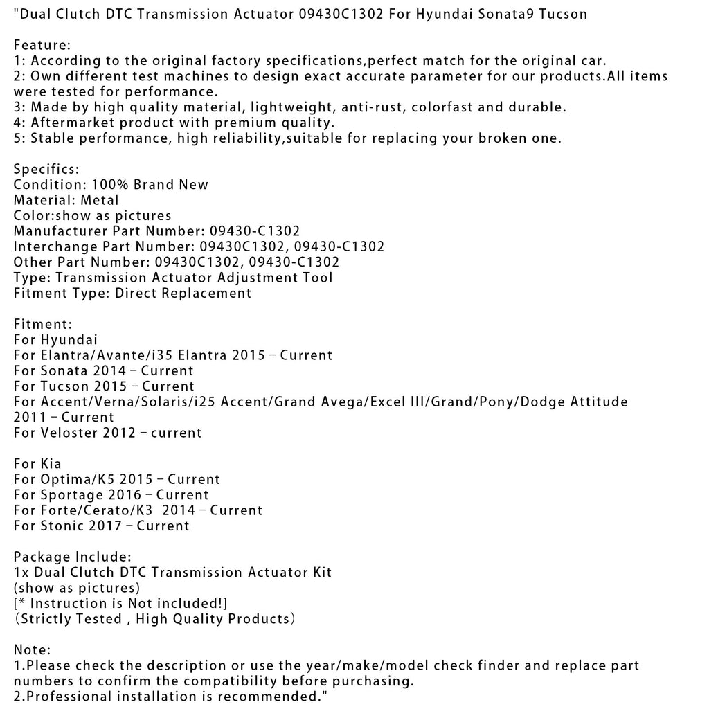 Dual Clutch DTC Transmission Actuator 09430C1302 For Hyundai Sonata9 Tucson