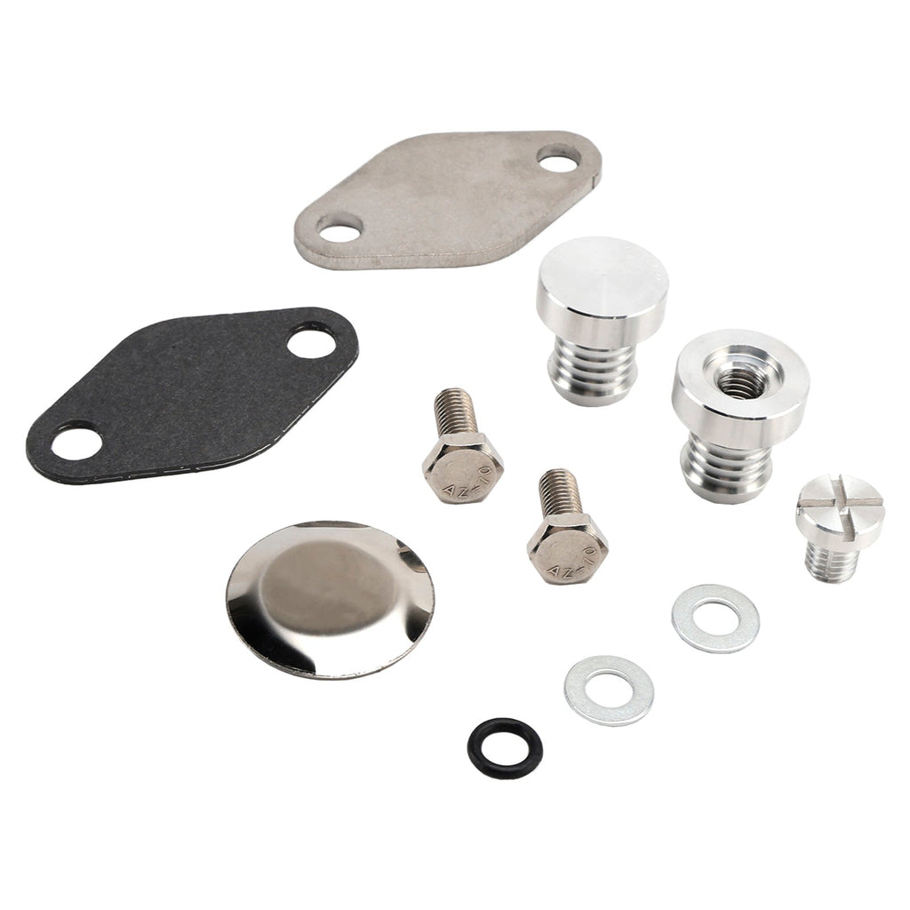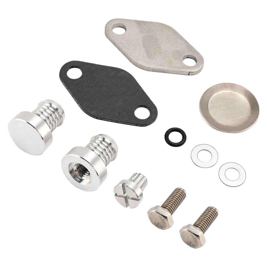 Our set includes EGR cooler hose plugs that allow you to remove the EGR cooler and EGR thermostat. With our kit you can not only remove the EGR cooler and also the thermostat. The set includes two plugs, one with a fixed one and one with the vent screw with the O-ring.