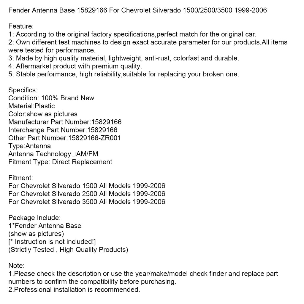 Fender Antenna Base 15829166 For Chevrolet Silverado 1500/2500/3500 1999-2006
