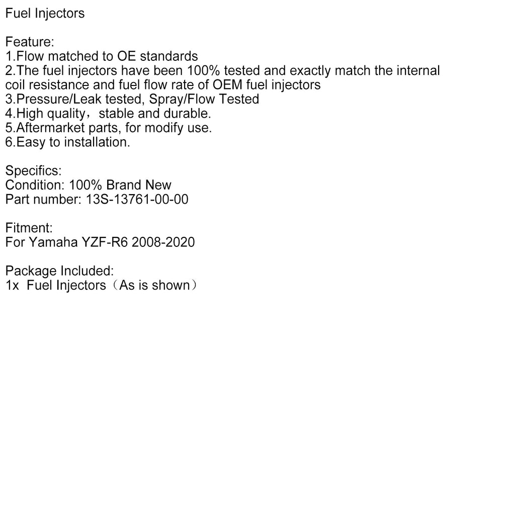 Fuel Injectors 13S-13761-00-00 For Yamaha YZFR6 YZF-R6 2008-2020