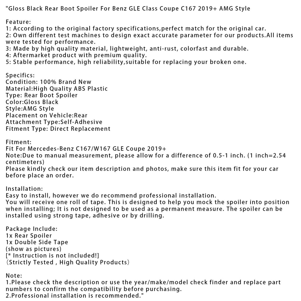 Gloss Black Rear Boot Spoiler Fit For Benz GLE Class Coupe C167 2019+ AMG Style