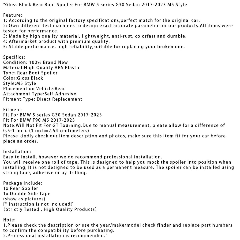 Gloss Black Rear Boot Spoiler Fit For BMW 5 series G30 Sedan 2017-2023 M5 Style