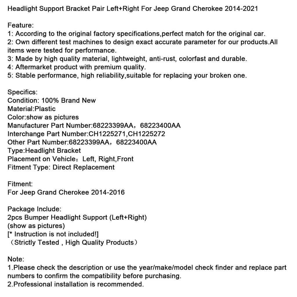 Headlight Support Bracket Pair Left+Right Fit For Jeep Grand Cherokee 2014-2021