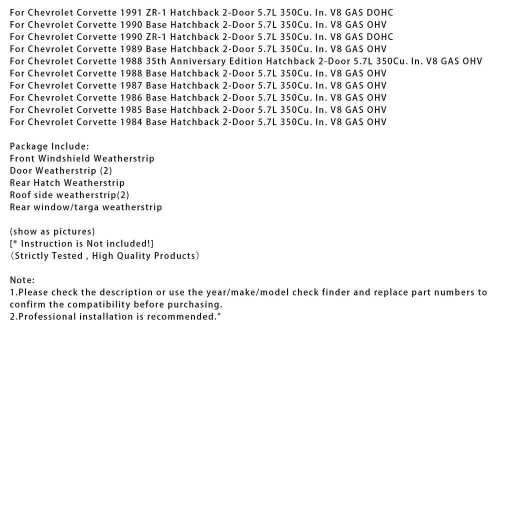 1984-1996 Chevrolet Corvette C4 Coupe Seal Weatherstrip Kit Waterproof 9096GGW