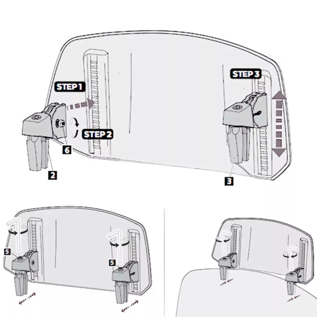 1:Adjustable windshield, fixed on the above of original windshield, heightening for better head protection rider safety.