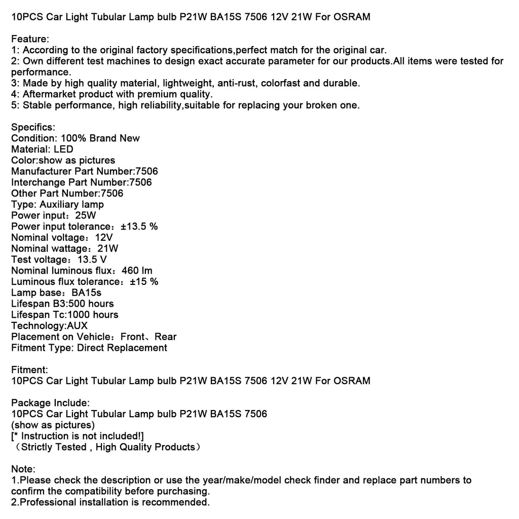 10PCS Car Light Tubular Lamp bulb P21W BA15S 7506 12V 21W For OSRAM