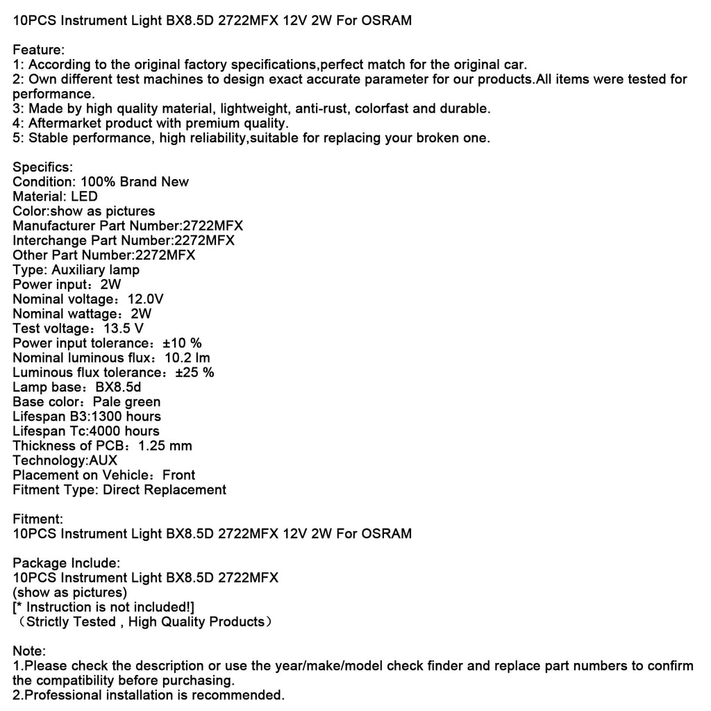 10PCS Instrument Light BX8.5D 2722MFX 12V 2W For OSRAM