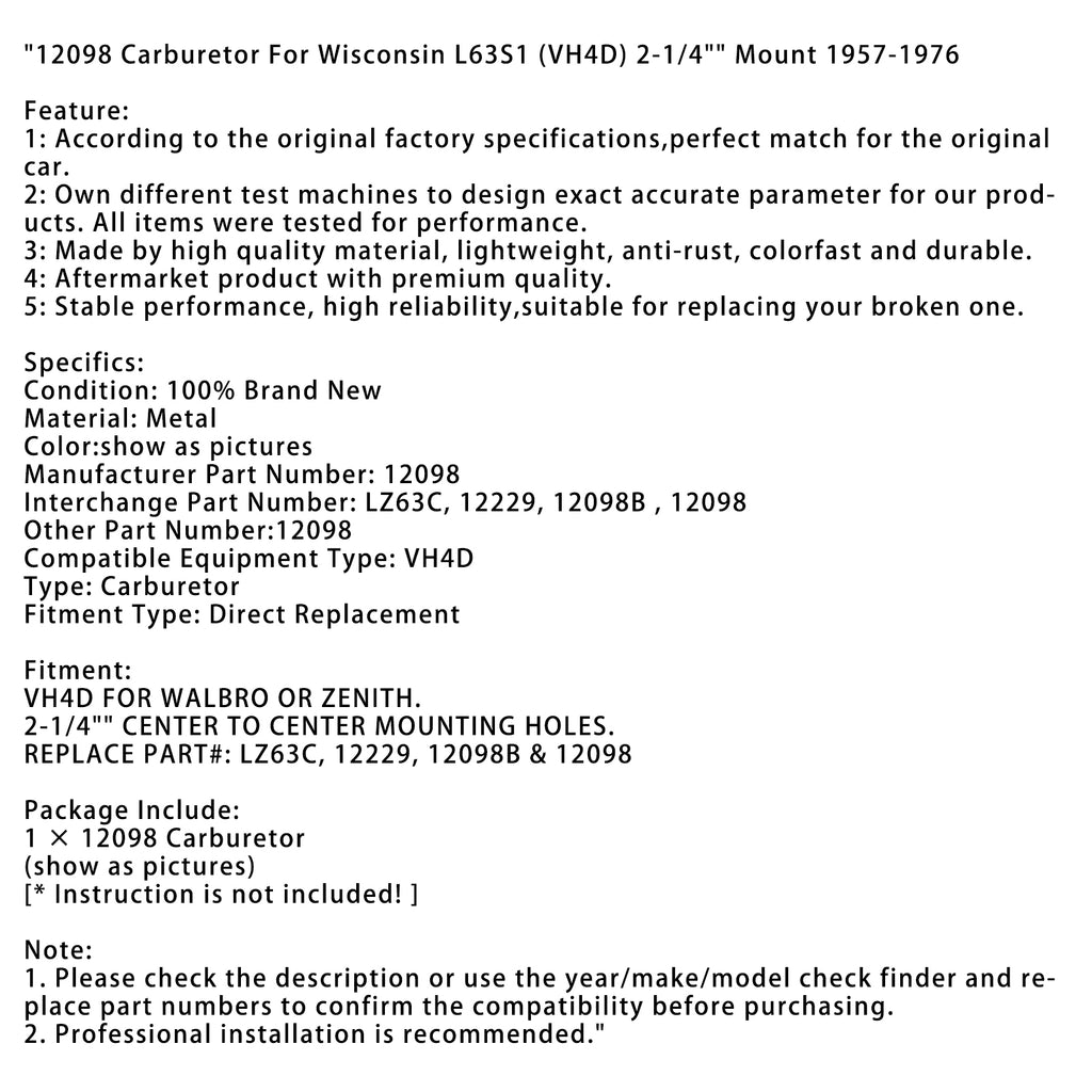12098 Carburetor For Wisconsin L63S1 (VH4D) 2-1/4" Mount 1957-1976