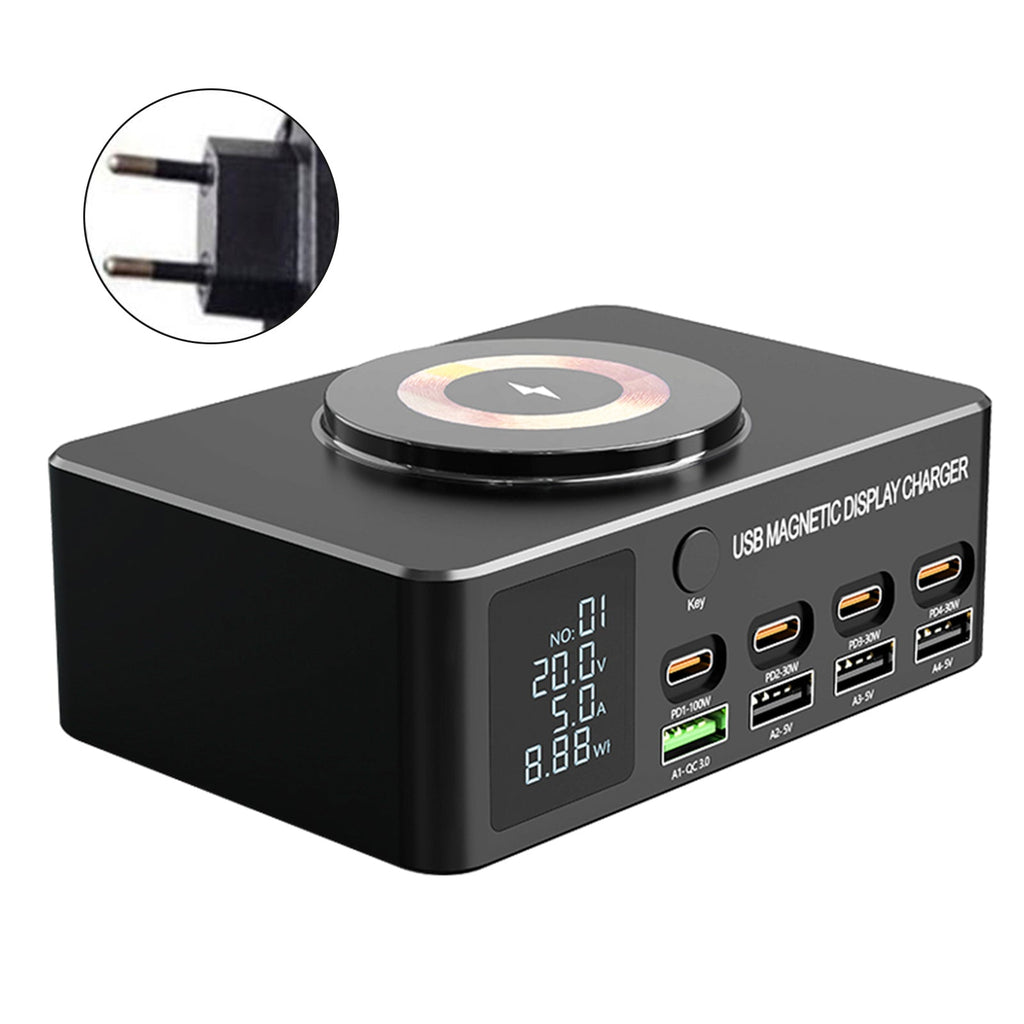 140W Fast Charging Charger Intelligent Digital Display PD100W Mobile Phone Notebook Magnetic Wireless Charging Multi-Port USB Charger EU Plug