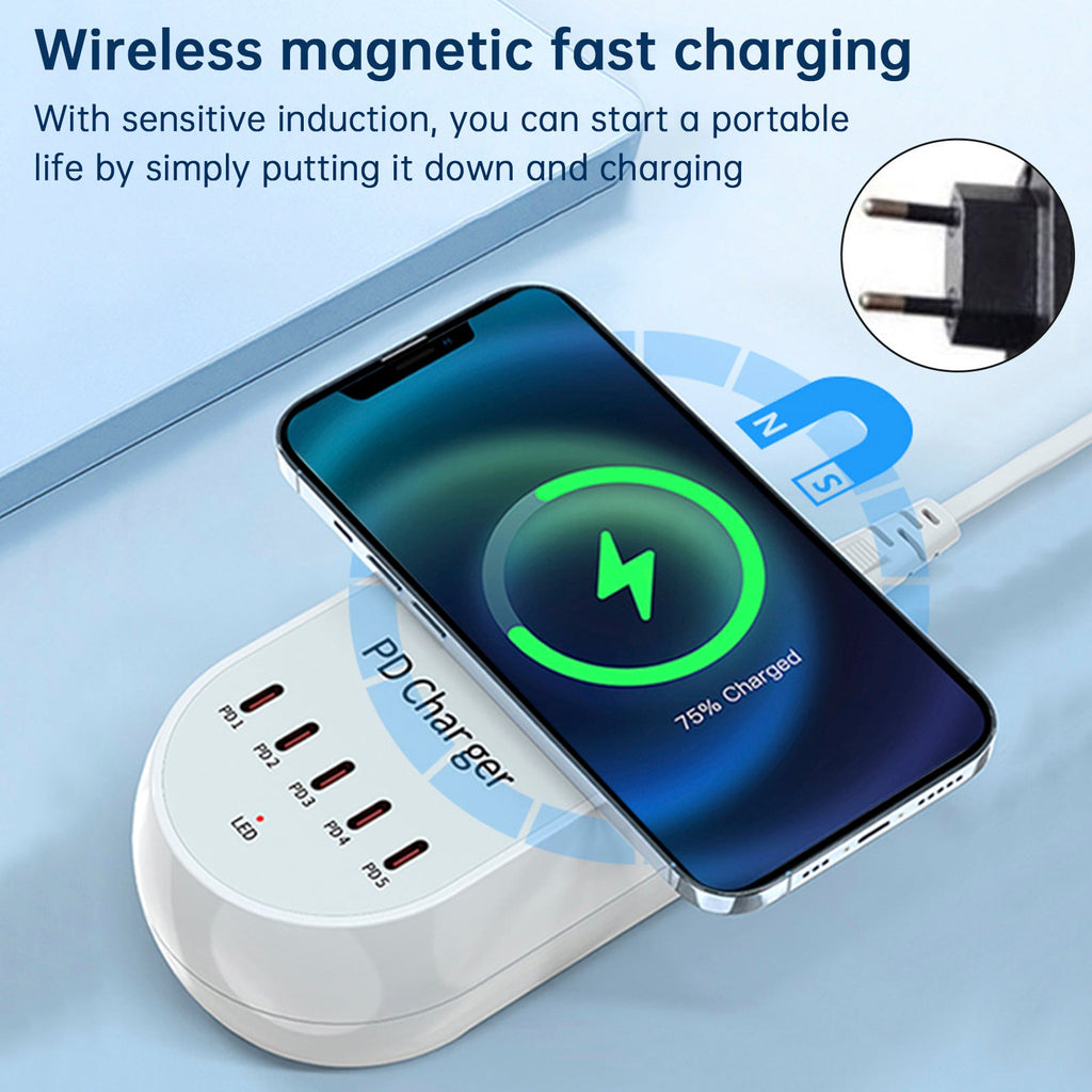 140W PD Multi-Port Charger Magnetic Wireless Fast Charging PD100W Laptop Mobile Phone Charger EU Plug