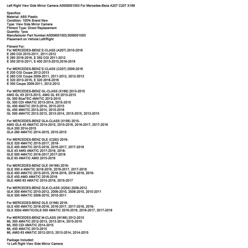Left Right View Side Mirror Camera A0009051003 For Mercedes-Benz A207 C207 X166