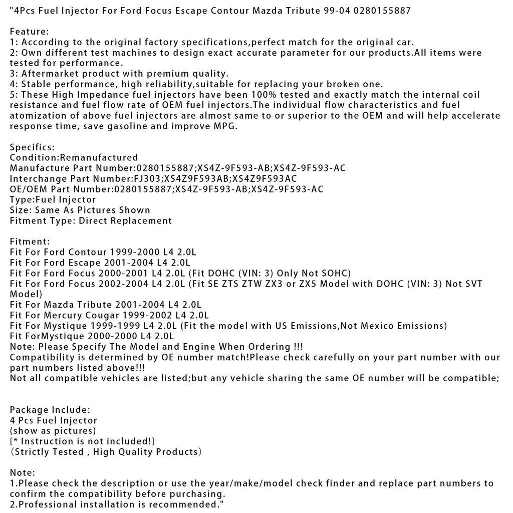 4Pcs Fuel Injector For Ford Focus Escape Contour Mazda Tribute 99-04 0280155887